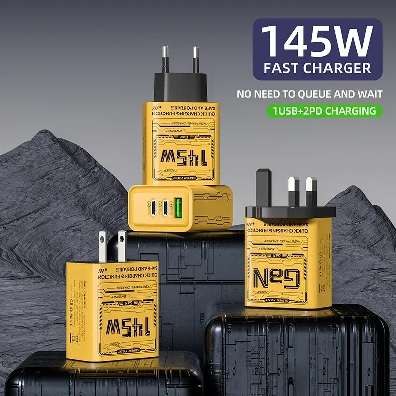 Ładowarka Sieciowa 145W 3 Porty USB-C - Szybkie Ładowanie PD QC3.0