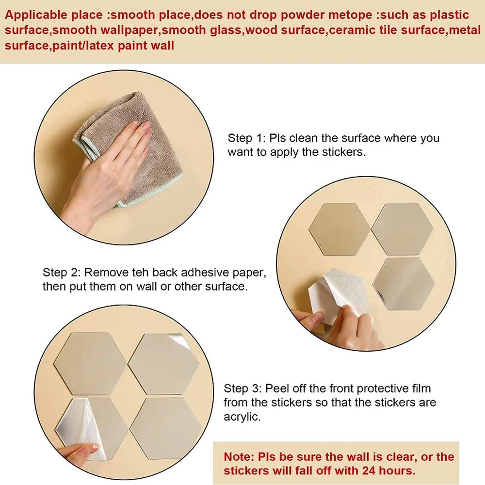 Naklejki Lustrzane Heksagon 6/12szt 3D - Akrylowe Samoprzylepne Dekoracje Ścienne