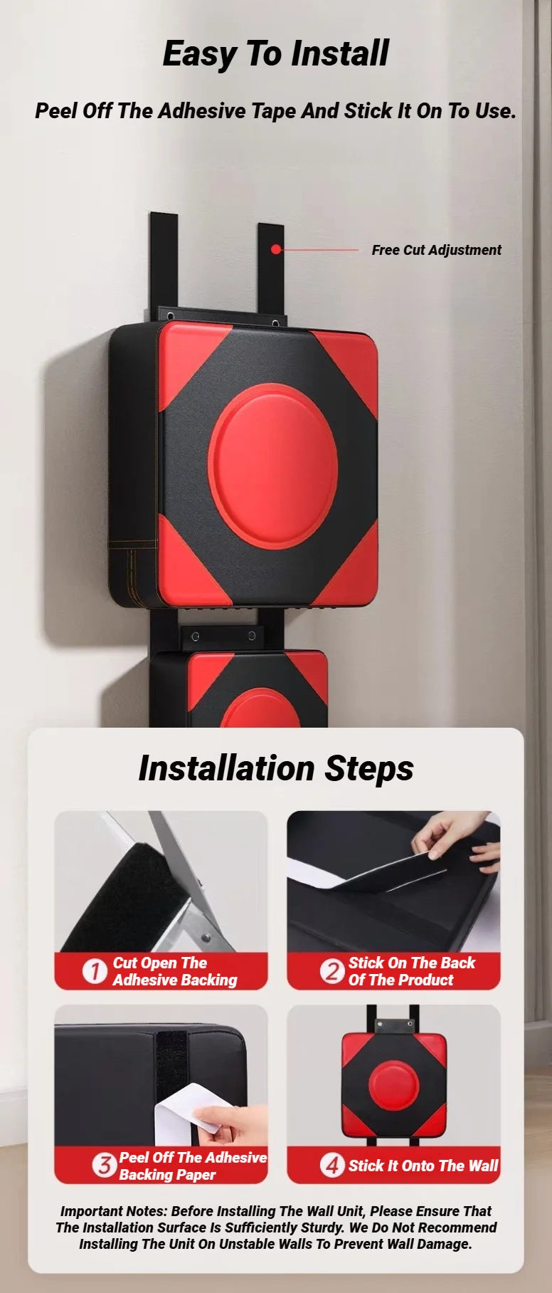 Ścienna Tarcza Bokserska 30/40cm - Regulowana Podkładka Treningowa do Taekwondo MMA Montaż Bez Wiercenia