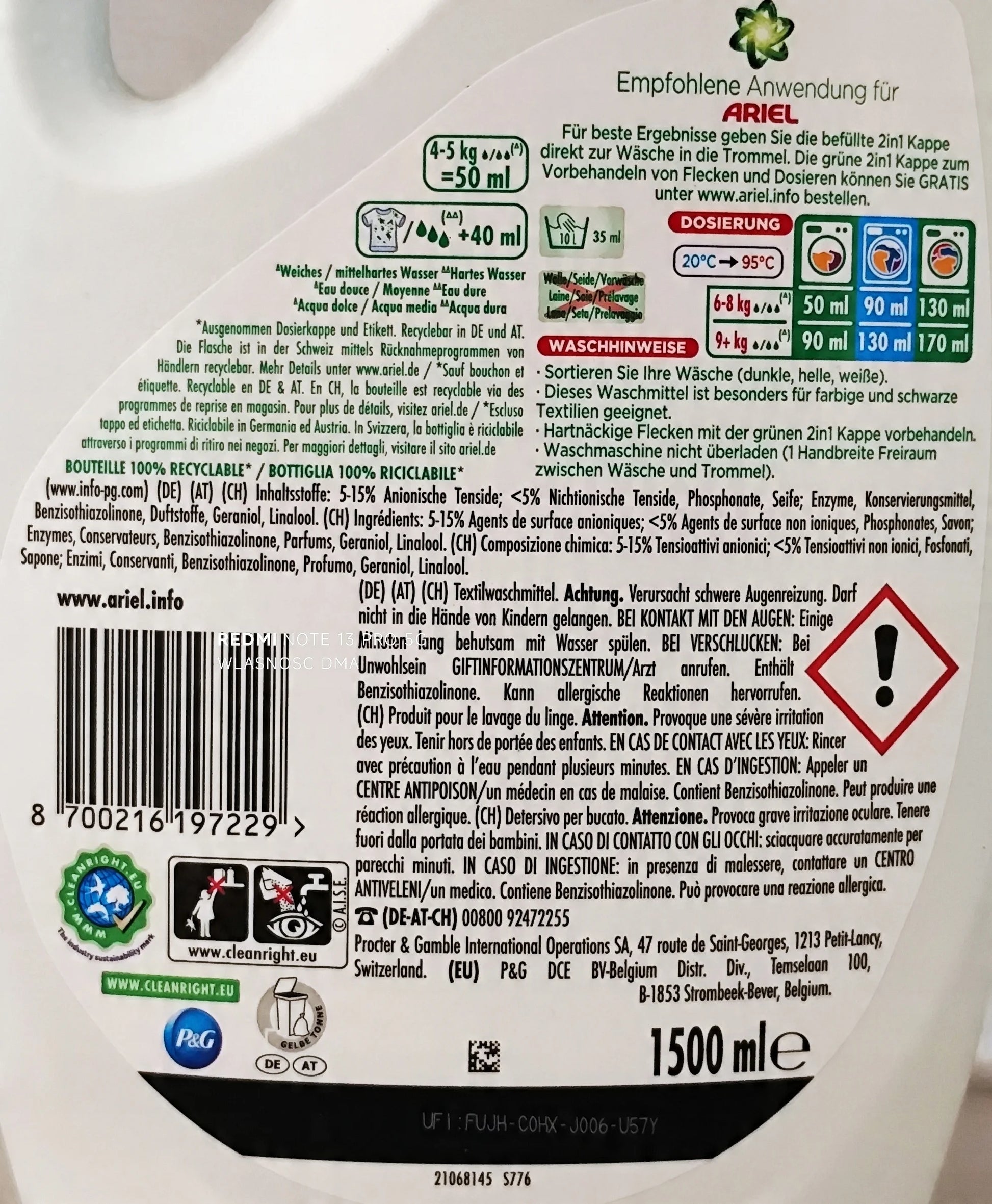 Ariel Color+ Gel 1500ml - Żel do Prania Tkanin Kolorowych