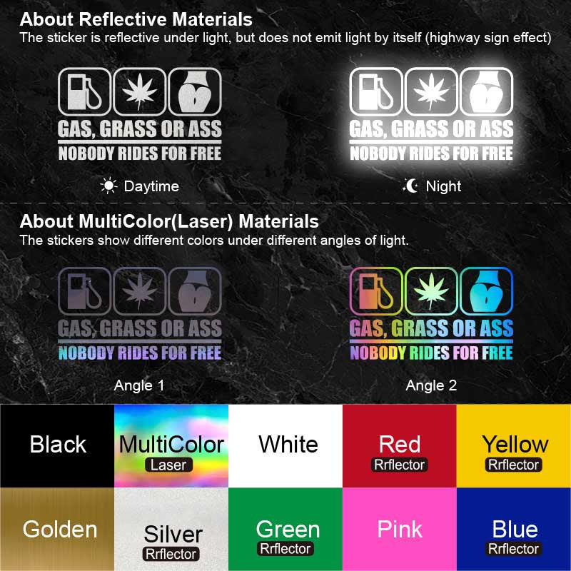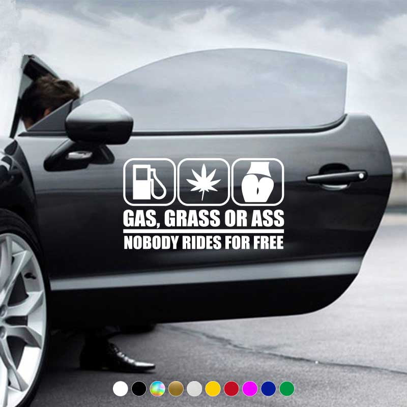 "GAS, CRASS OR ASS NOBODY RIDES FOR FREE" Car Stickers Automobile Trucks Windows Bumper Car Accessories Waterproof Viny Decal