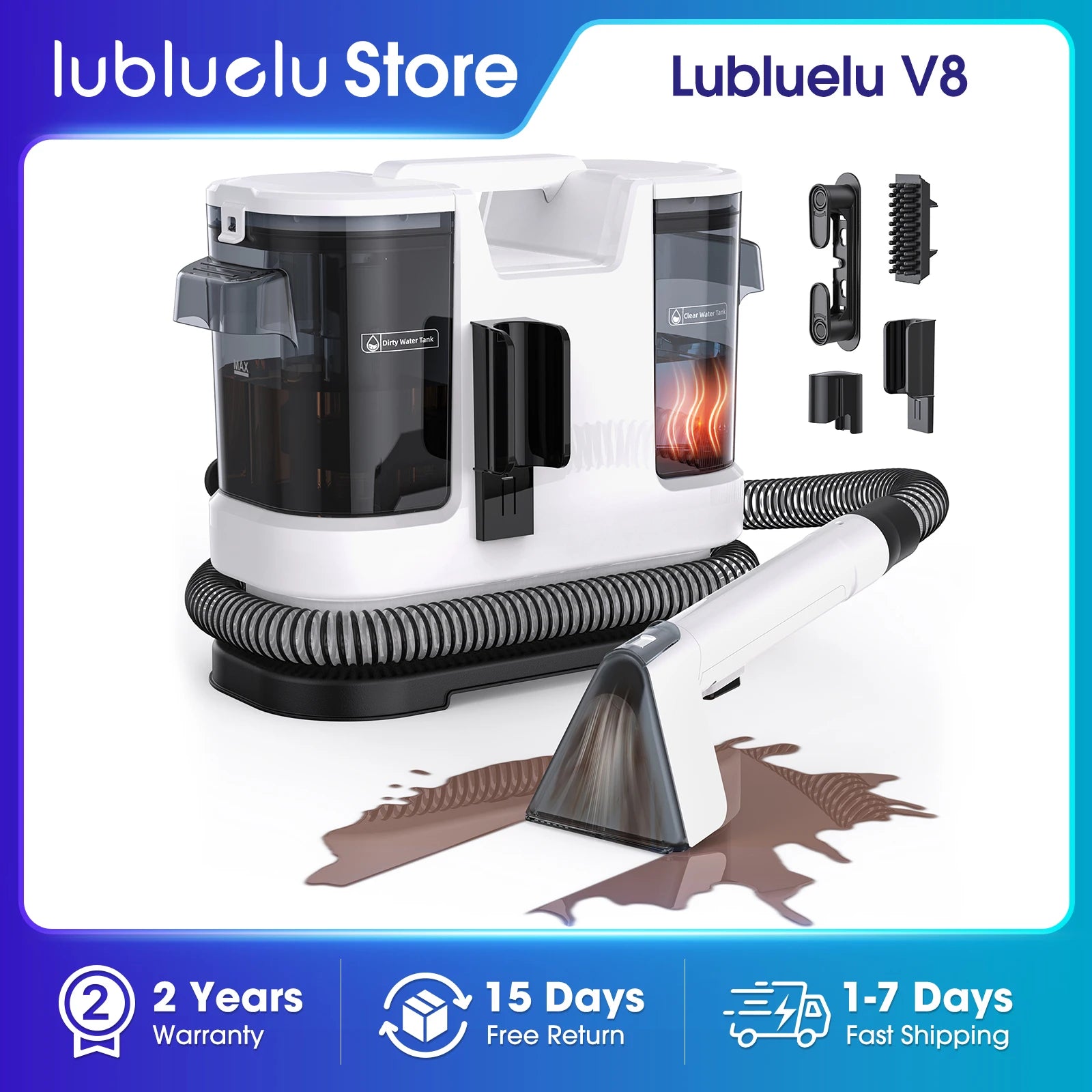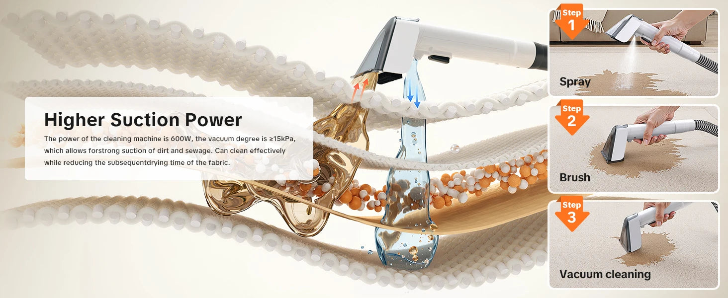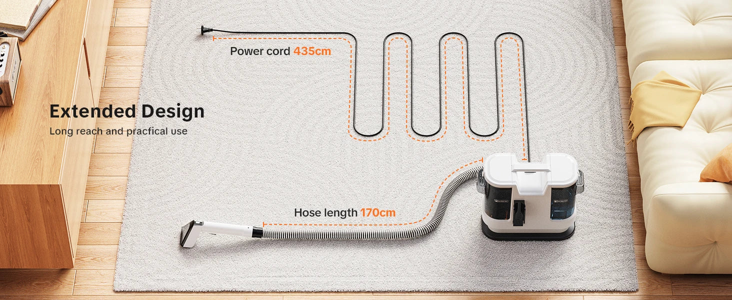 Lubluelu V8 Myjący Odkurzacz Dywanów 800W - Gorąca Woda 60°C, Silne Ssanie 15kPa