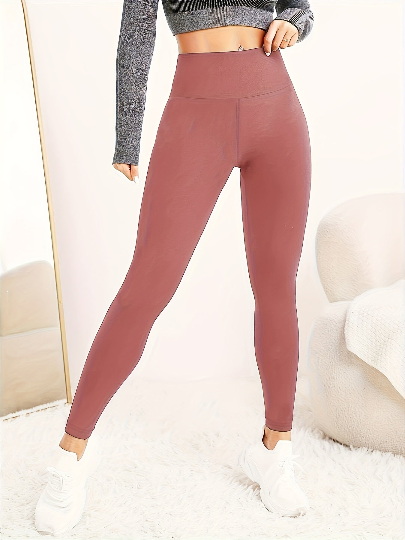 Legginsy Sportowe Damskie z Wysokim Stanem - Elastyczne Spodnie do Jogi i Fitnessu