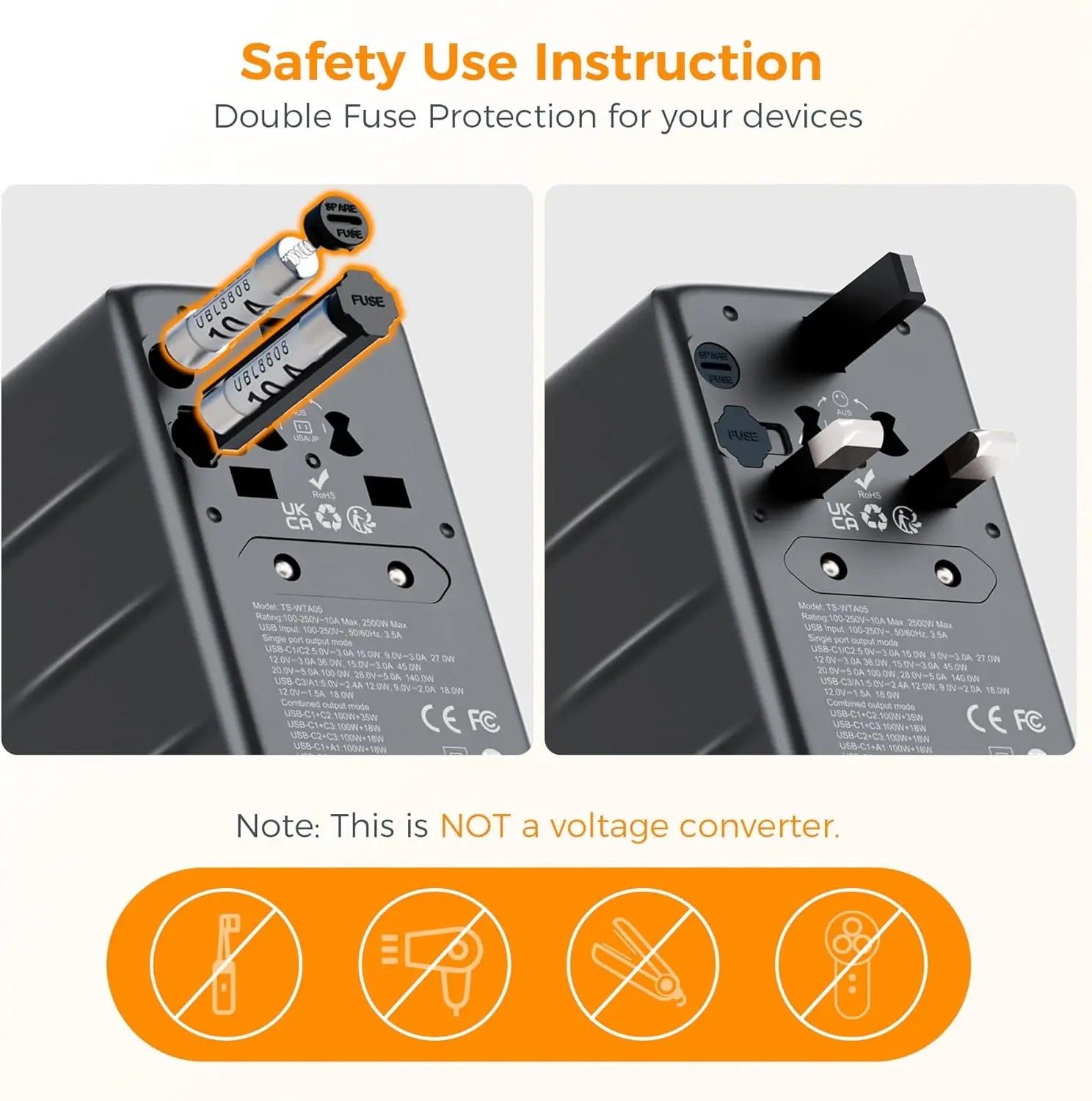 Adapter Podróżny TESSAN 140W GaN - Uniwersalny EU/UK/US/AUS + 4x USB