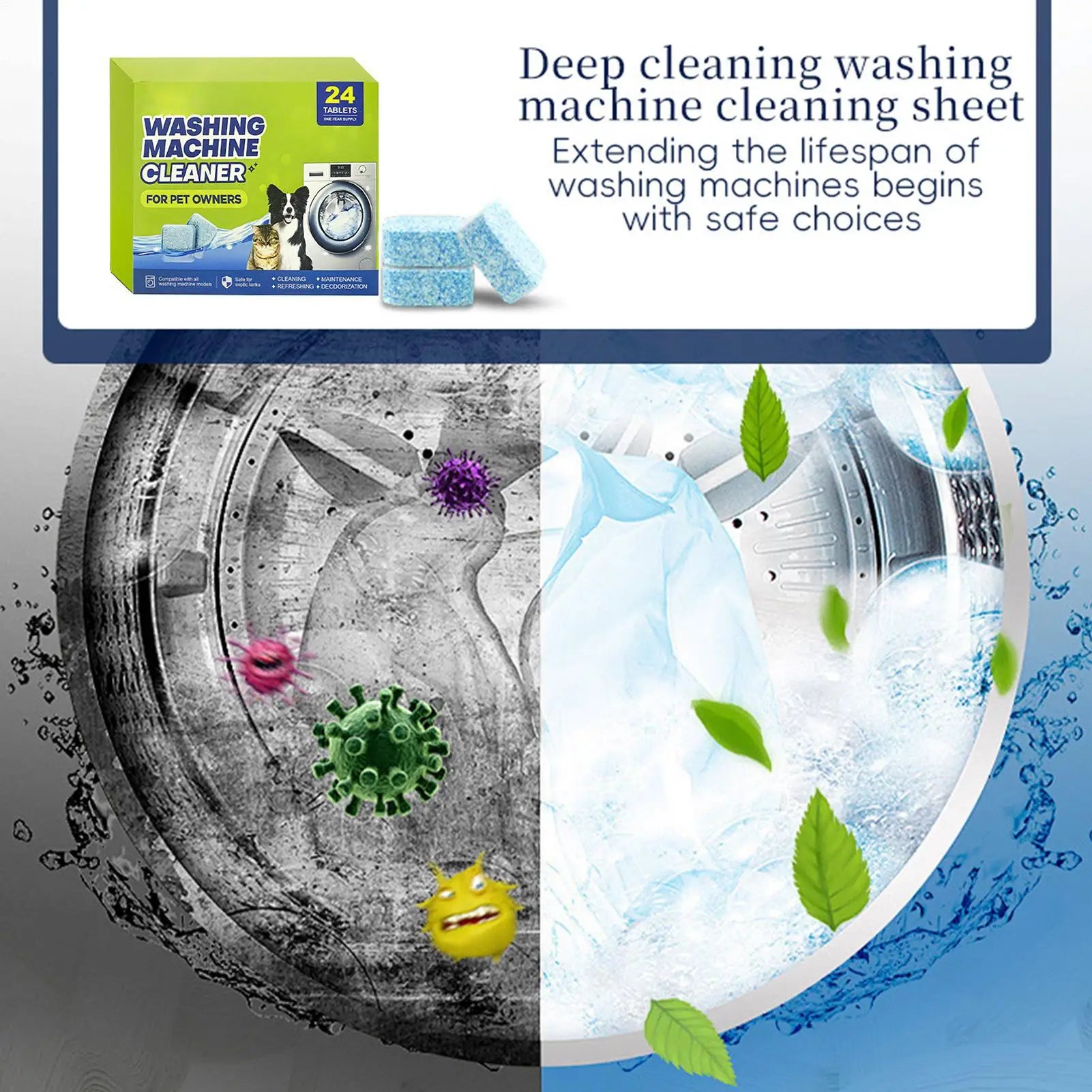 Washing Machine Cleaner Tablets 24 Tablets Active Cleaner Powerful Washer Descaler For Laundry Top Front Loader Washing Machine